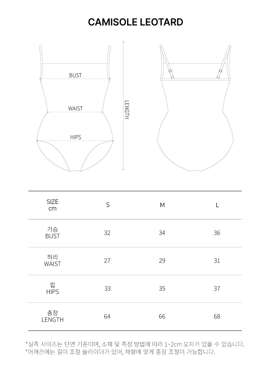 군더더기 없는 실루엣의 캐미솔 레오타드입니다.