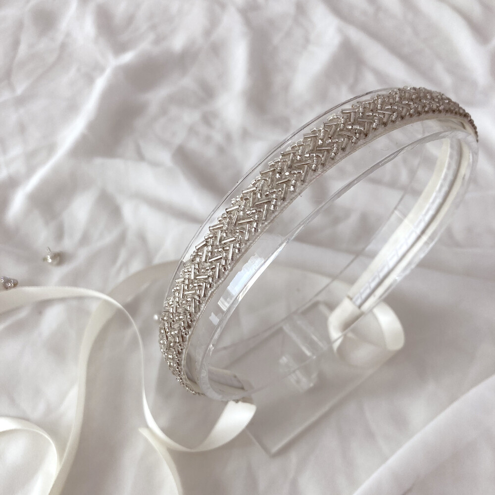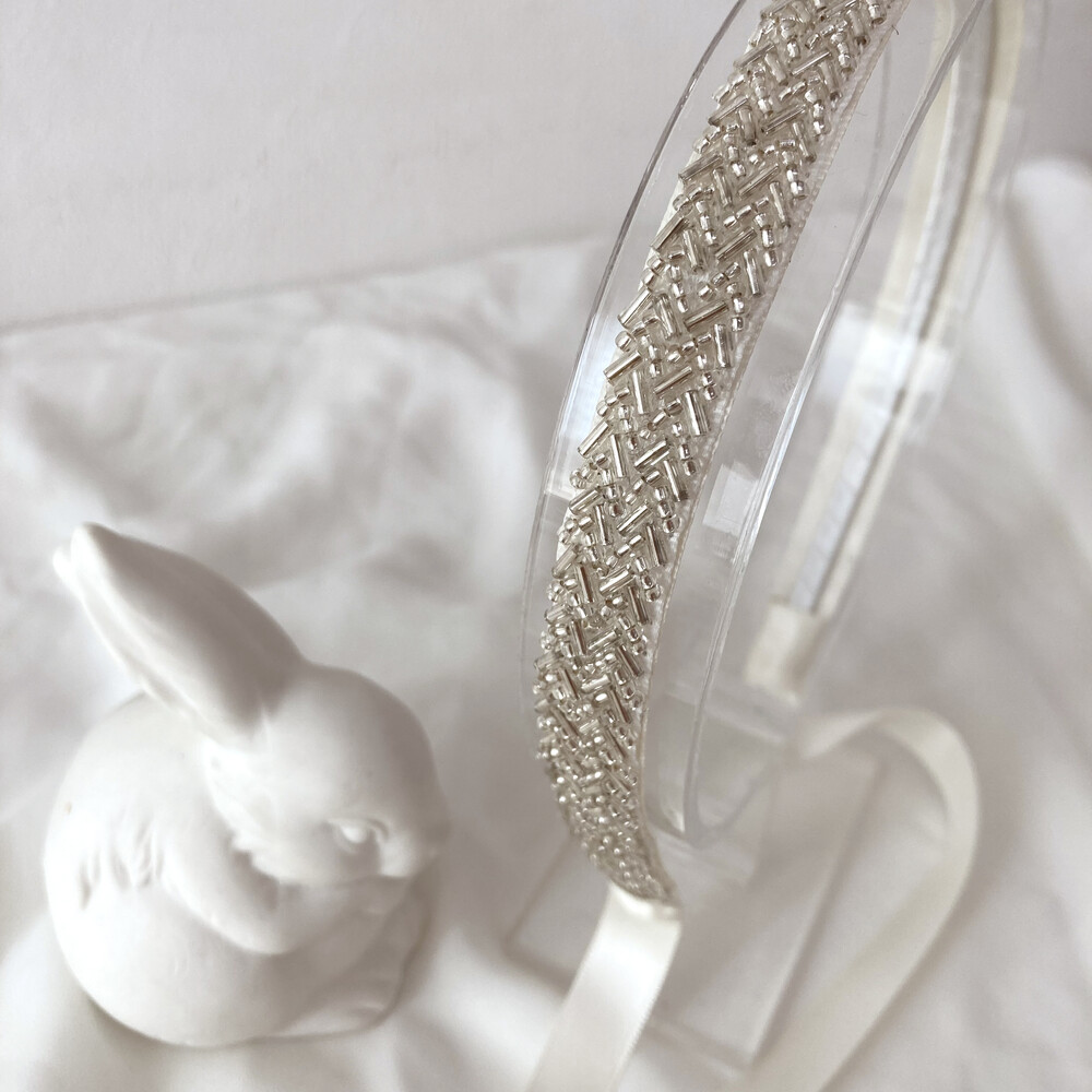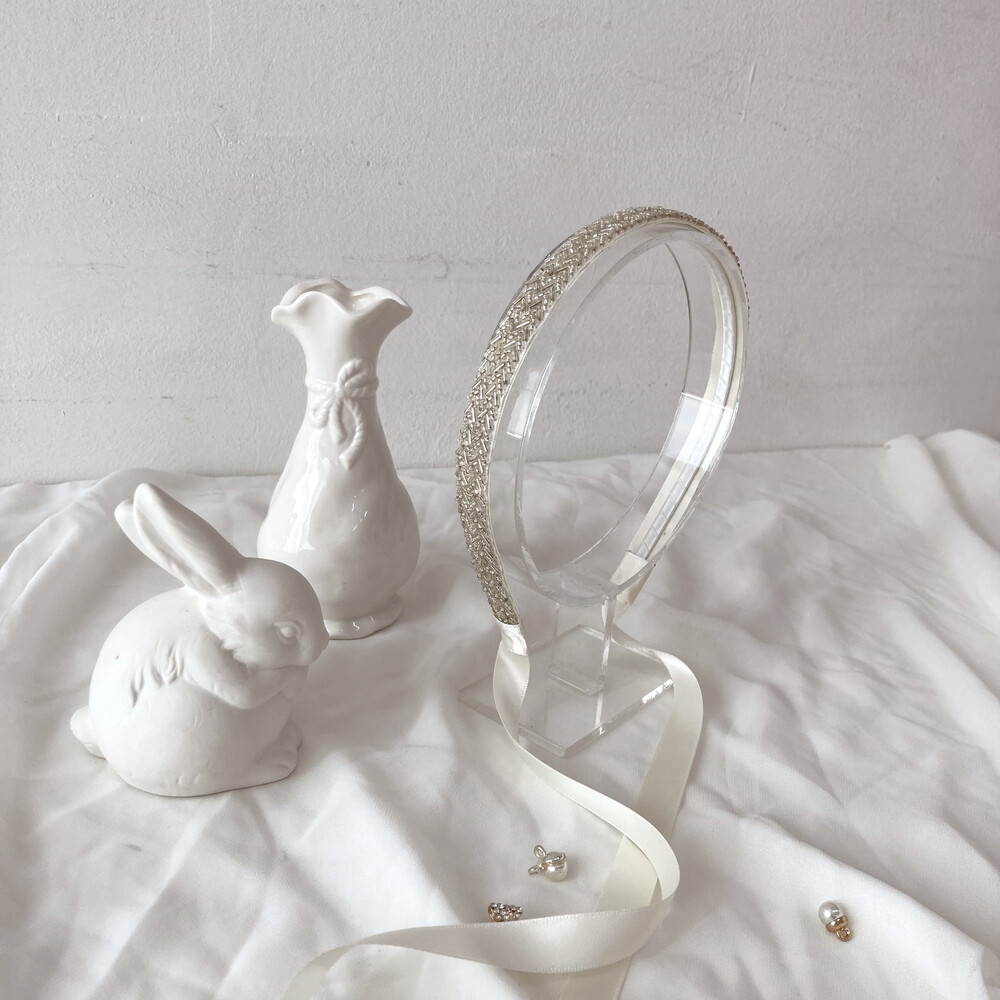 고전적인 무드의 비즈 헤어밴드입니다.